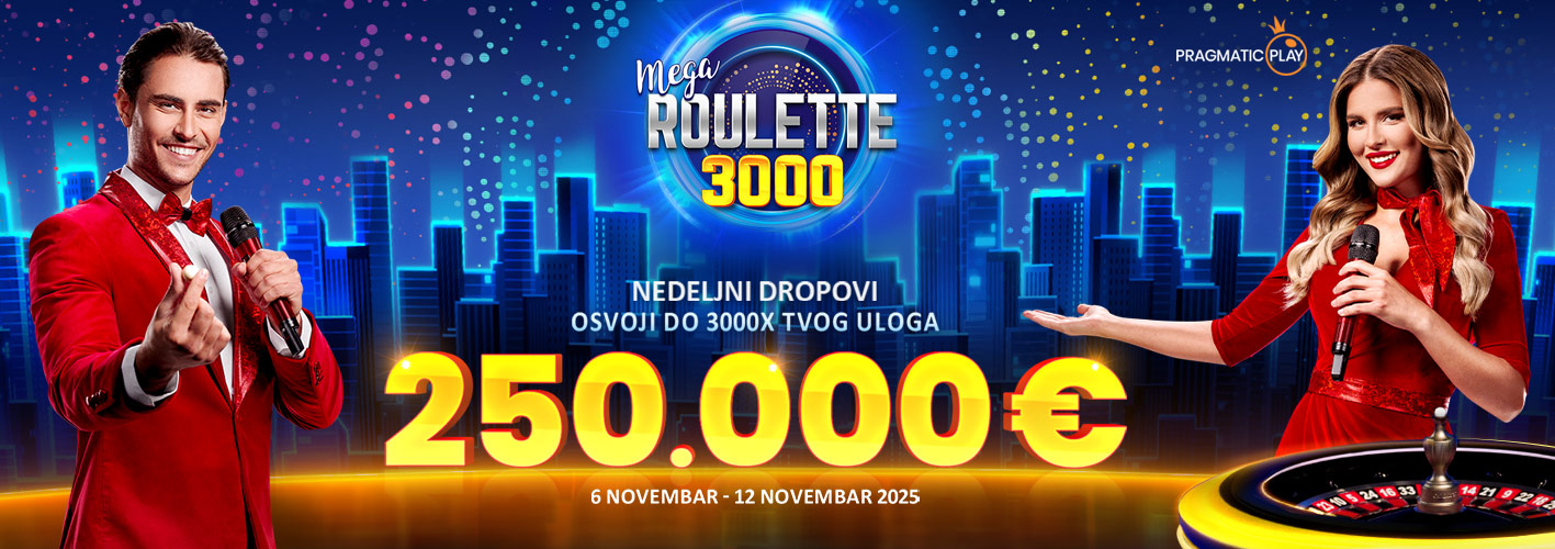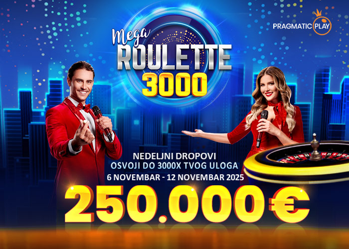 U periodu od 6. novembra do 12. novembra 2025. godine, Pragmatic Play najnovija promocija u okviru Live Casino Network obilježava lansiranje igre Mega Roulette 3000 — jednog od najiščekivanijih game show igara ove godine.