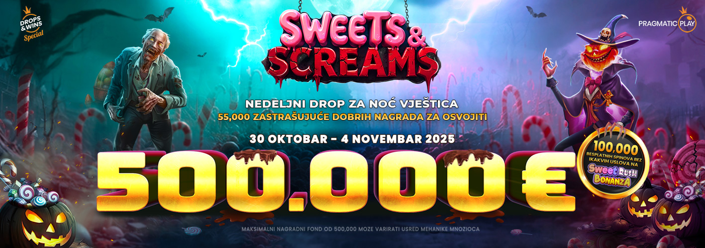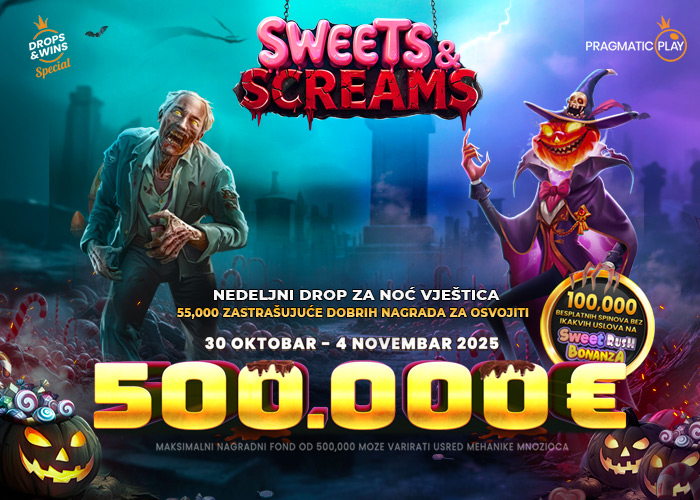 Spremi se za Sweets & Screams u PRAGMATIC PLAY uzbudljivoj globalnoj promociji, sa nagradnim fondom od 500.000 € u Halloween Weekly Drop-u.